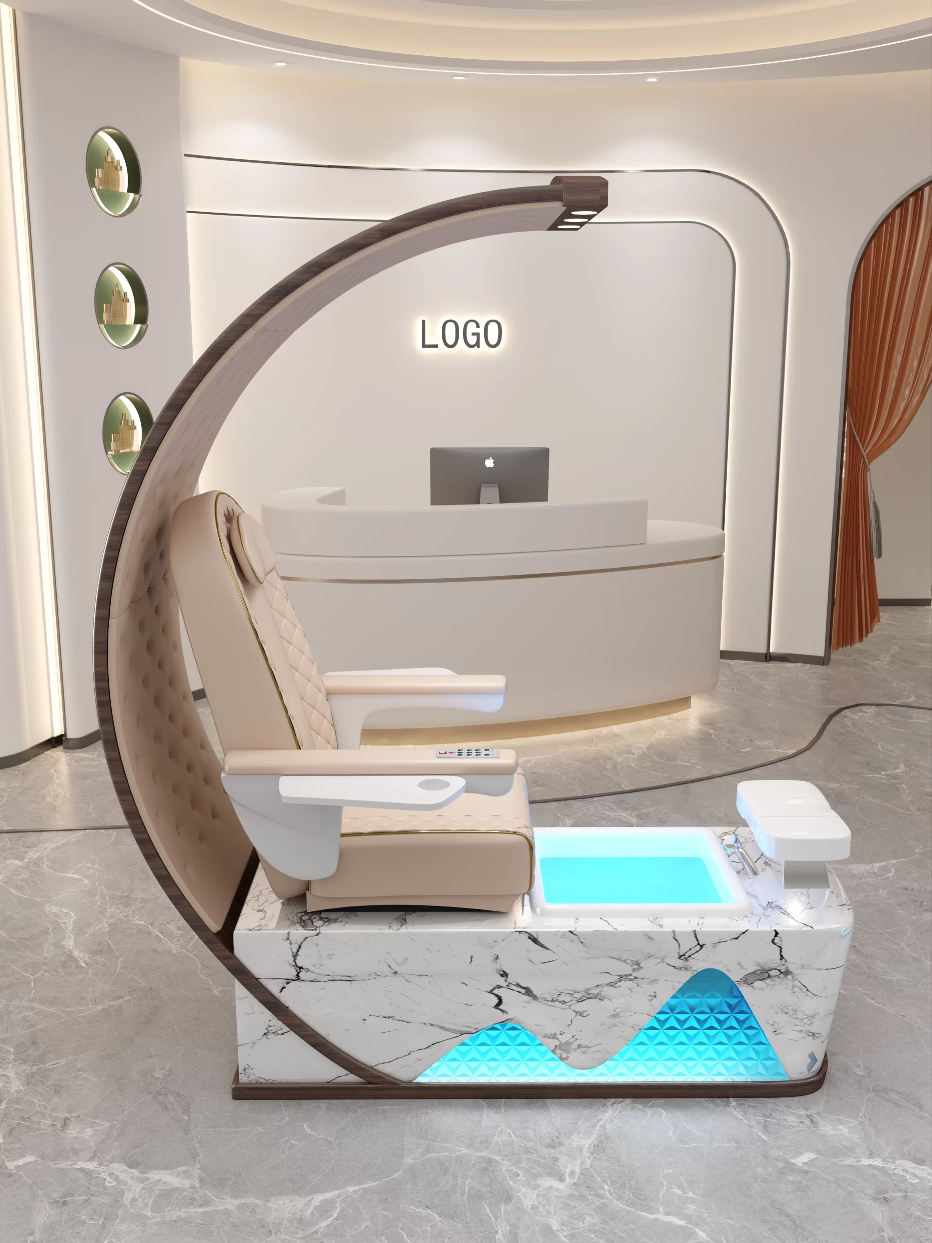 Gepolstert mit hautfreundlichem PU-Leder, optional mit echtem Leder, unterstützt durch dichten Rückprallschaum. Die weiche Unterstützung sorgt dafür, dass die Kunden während des gesamten Service entspannt bleiben.