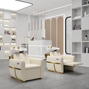 Various leather colors can be customized.this chair combines functionality with sleek, minimalist styling for a modern salon aesthetic.