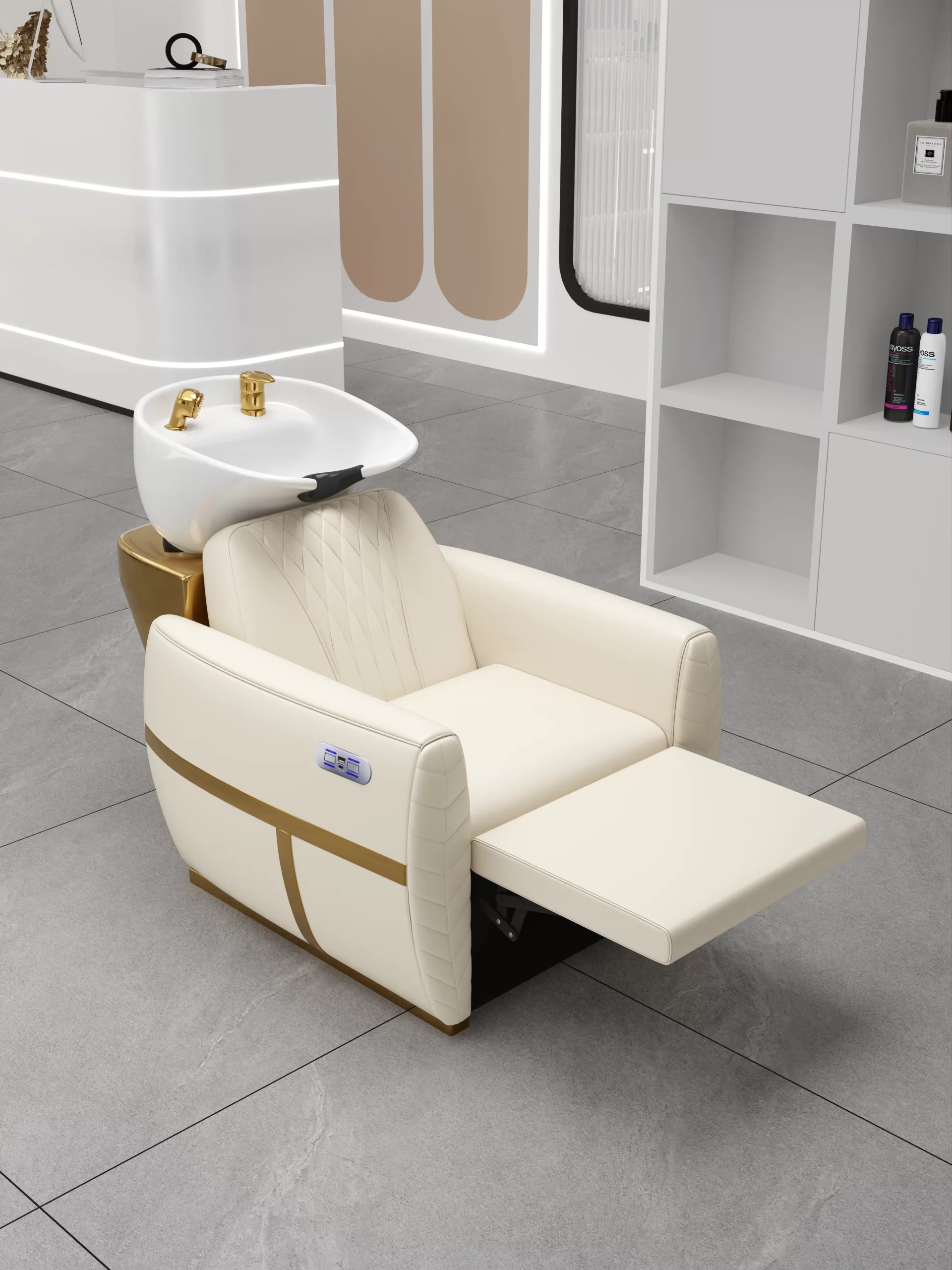 Adjustable Comfort: Features an adjustable tilt-bowl to cater to your client’s comfort needs, with a super thick seat cushion for added luxury.